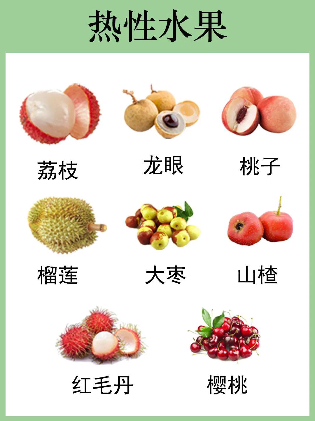 常见的热性水果有:荔枝、龙眼、桃子、榴莲、大枣、山楂、红毛丹、樱桃。