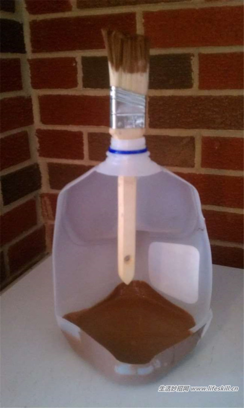 ??10.把废塑料瓶按下图切开,底部盛油漆,上面放刷子,太好用了!