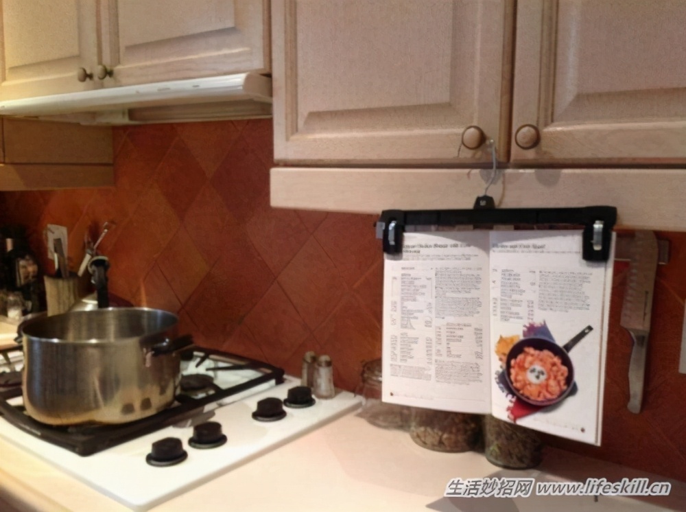??2.衣架可以用来悬挂食谱,这样一边做菜一边看,就更方便啦!