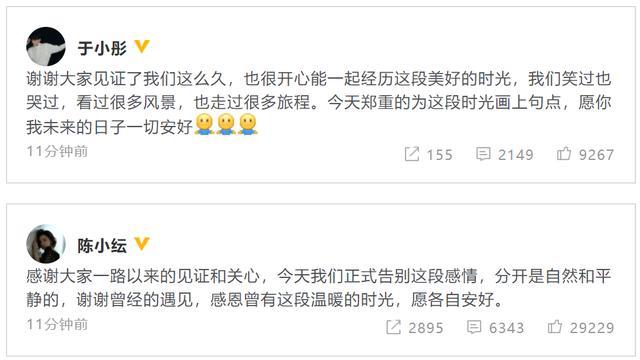 《亲爱的,不爱的》这个节目不仅仅是离了婚的明星可以参加,分了手的明星也可以参加,有几对情侣分得也是莫名其妙的,没有任何先兆。2020年12月23日,歌手信宣布分手,女友和他谈了17年。陈小纭和于小彤也可以来,2020年8月24日,他们宣布分手了。