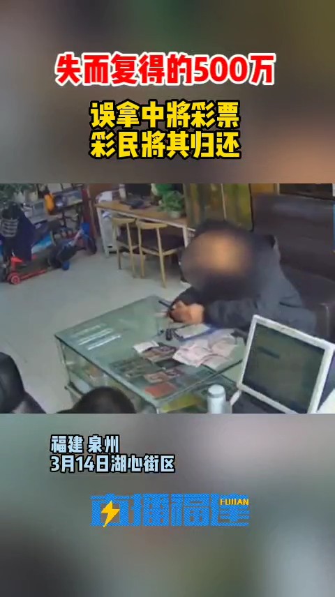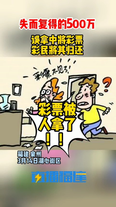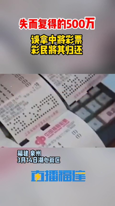 3月14日晚泉州市区湖心街一家彩票店有人中了福彩双色球大奖:500多万!结果,这张中奖彩票被另一彩民拿走了……中大奖彩票被错拿当晚7点20名老彩民在连先生店里合买了一张彩票面值1848元而当晚8时左右连先生的妻子陈女士在整理彩民买的票根时却发现找不到这张彩票了