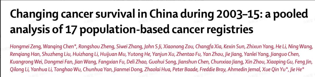 [6]Changing cancer survival in China during 2003–15: a pooled analysis of 17 population-based cancer registries[J]. Lancet Global Health, 2018, 6(5):e555.