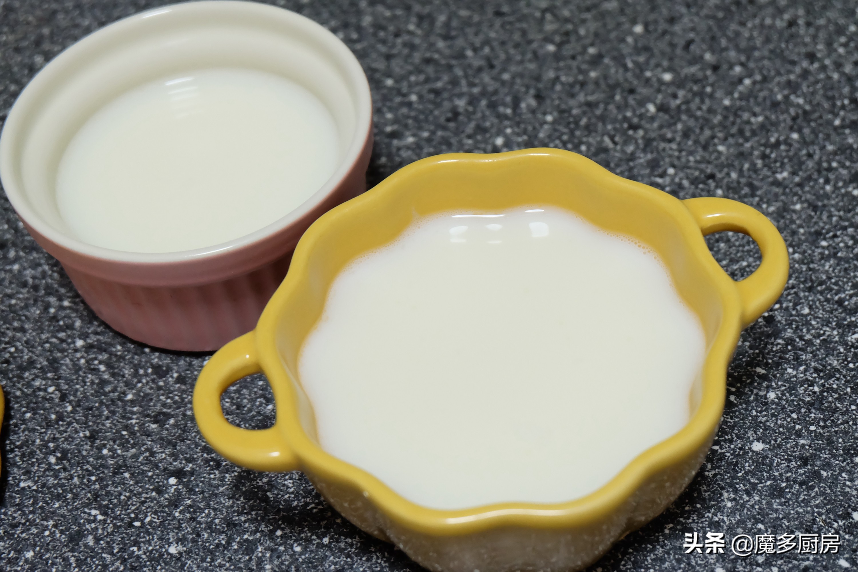 脱脂牛奶脂肪含量低,适合需要控制体重和血脂的人群。而鸡蛋里的蛋清部分营养丰富,颜色透明清澈, 和牛奶混合在一起还可以保持牛奶的乳白色,让双皮奶更好看。