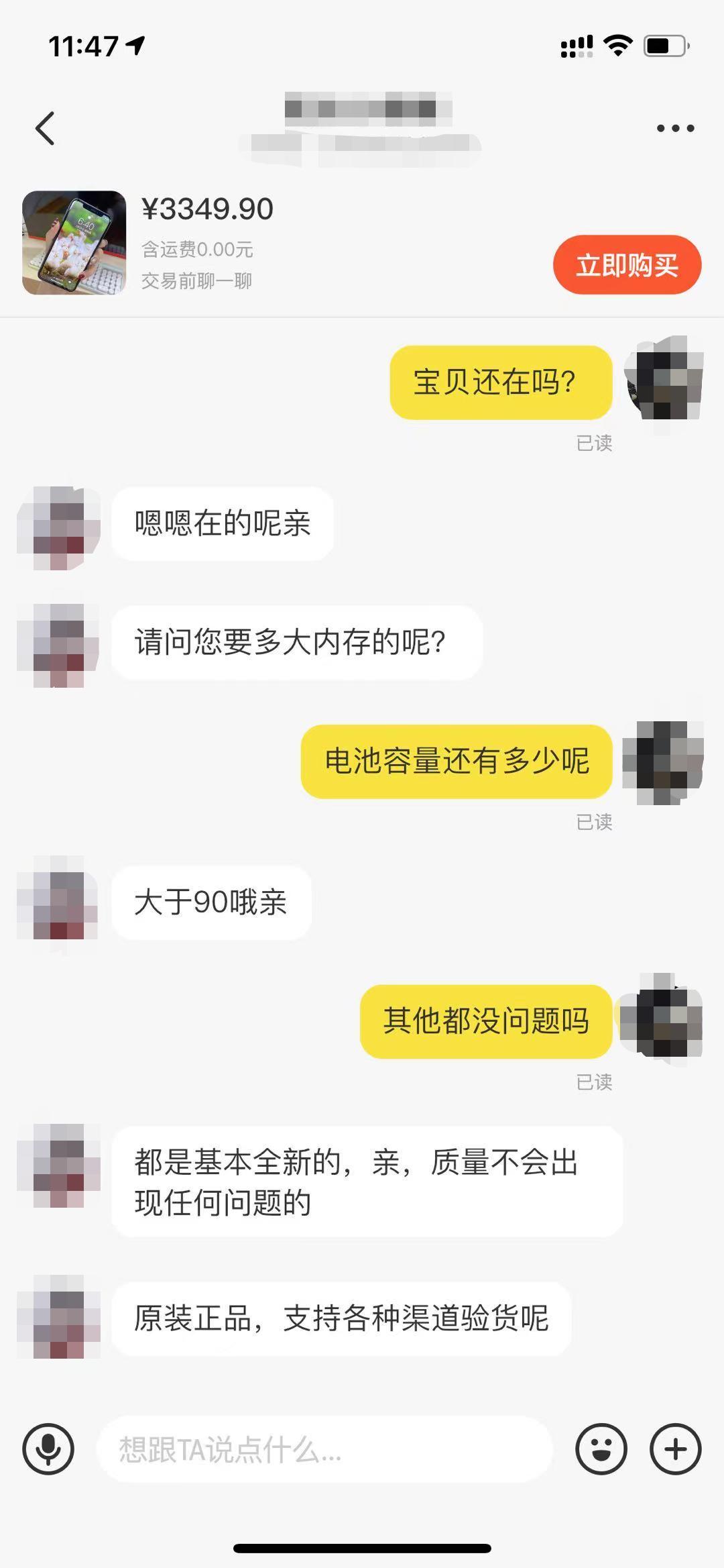 虽说闲鱼上确实能够捡到一些漏,但不是每个人都能够被这张“大饼”给砸到的。比如iPhone 11 Pro Max,哪怕是按照市场回收价来算也至少需要5130元(256G版本),但小雷在闲鱼上随便一搜,就能找到多款售价低于4000元的iPhone 11 Pro Max。在询问卖家时,卖家甚至表示机器为原装正品,并没有替换过零件。一般来说会主动表示自己机子没有问题的卖家大多都是有问题的,看到这种价格远低于市场价的机器,我们可以直接略过。