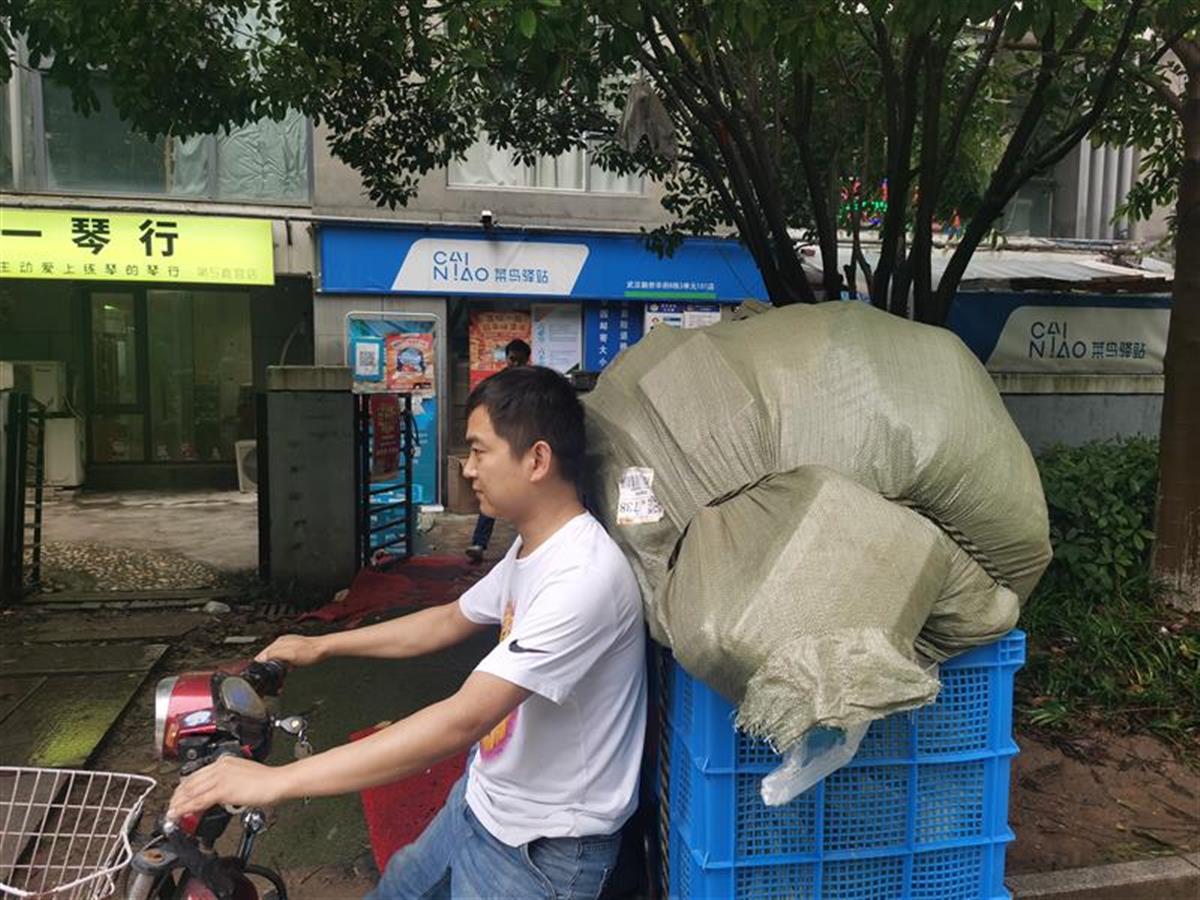 5月14日中午1点,武昌区融侨华府小区8栋菜鸟驿站,快递员朱佳刚刚装好满车的快递,准备出发去派件。手机响了。