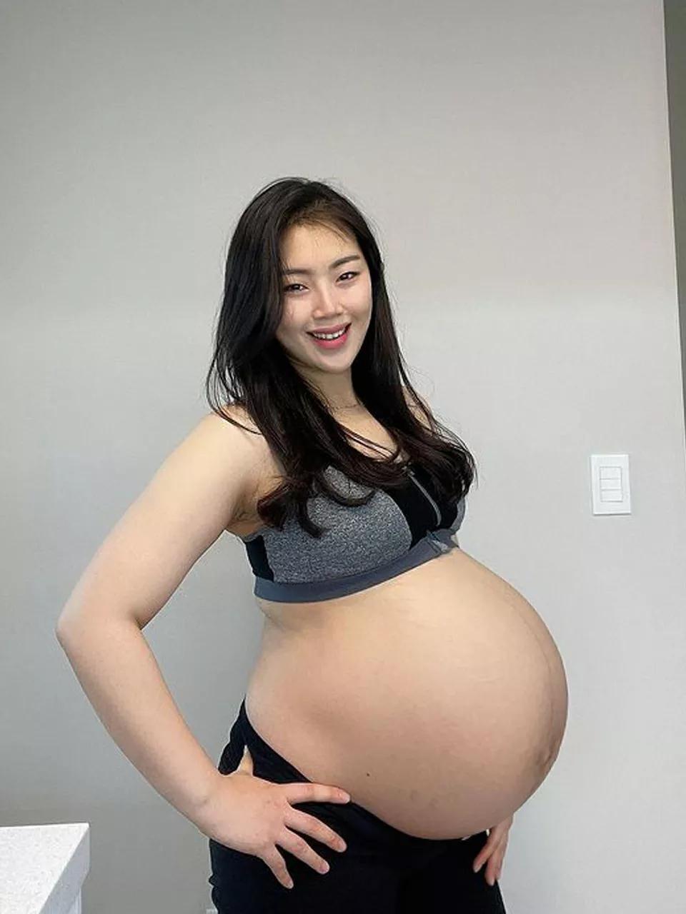 孕中期肚子都很圆,但是35周后肚子就很尖,肚脐全部爆出来了。