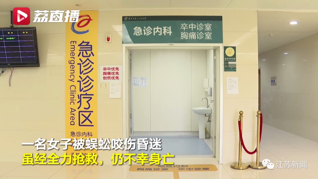 常州二院阳湖院区急诊科主治医师杨帆告诉记者:“该女子被蜈蚣咬伤后,大概过了20分钟左右出现头晕,随后就丧失意识倒地了。送到医院的时候女子两个瞳孔已经散大了,考虑她可能是因蜈蚣咬伤导致的过敏性休克,伴发喉头水肿,导致窒息性死亡。”