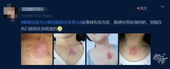 还有不少网友晒出被隐翅虫咬伤的照片: