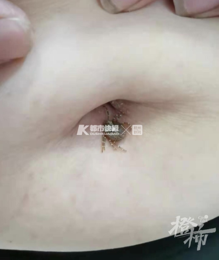 蜱虫口器埋在肚脐眼,乍一看很像肚脐眼多出一块肉。