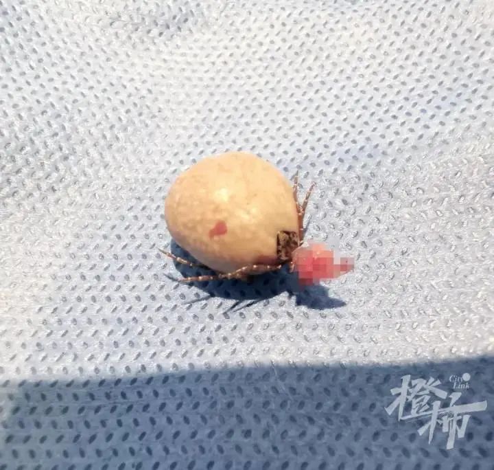 即便是处理过无数蜱虫,埋在沈大妈肚脐眼里的这只蜱虫,还是让皮肤科医生们吃了一惊。为什么吃惊?“一来,这只蜱虫咬得位置太刁钻,而且虫身颜色跟肤色很接近,极具迷惑力。二来,当时蜱虫的头已经紧紧咬住了皮肤,比较难取。”