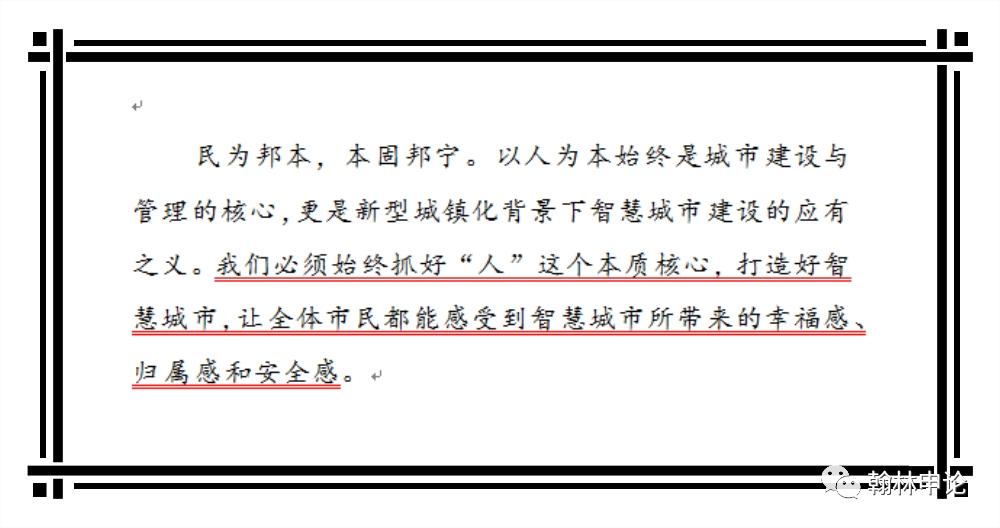 上文是以“智慧城市建设”为主题的文章尾段,属于“让别人”类,强调的是“让”字前的半句,“抓好人这个本质核心、打造好智慧城市”是要突出的因,“市民感受到幸福感、归属感和安全感”是顺理成章的果。