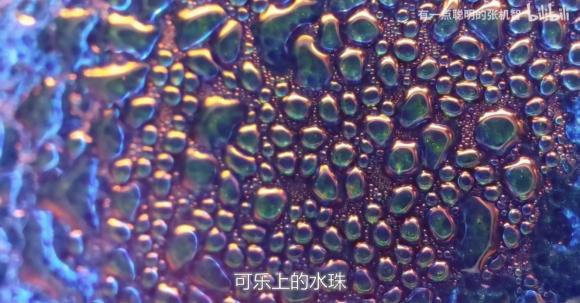 还有博主“有一点聪明的张机智”,用显微镜模式拍出了可乐罐上的水珠,很新颖的视角,在这个内容致胜的短视频时代,想必会引起更多观众的讨论兴趣。
