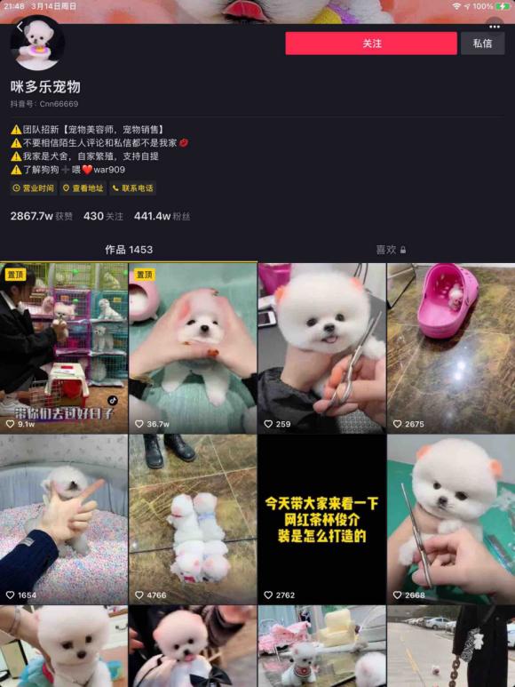比如专注宠物记录的博主“咪多乐宠物”,点进她的主页,满满的都是可爱狗狗,我的心瞬间就化了。