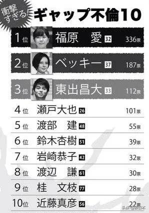 不仅是指责而已,福原爱的工作和生活也因此受到严重的影响。福原爱东京奥运会解说工作被叫停,甚至被评选为“不伦艺人”排行榜第一名。而此前那个火遍全网的孕期出轨男东出昌大,才排在第三名。