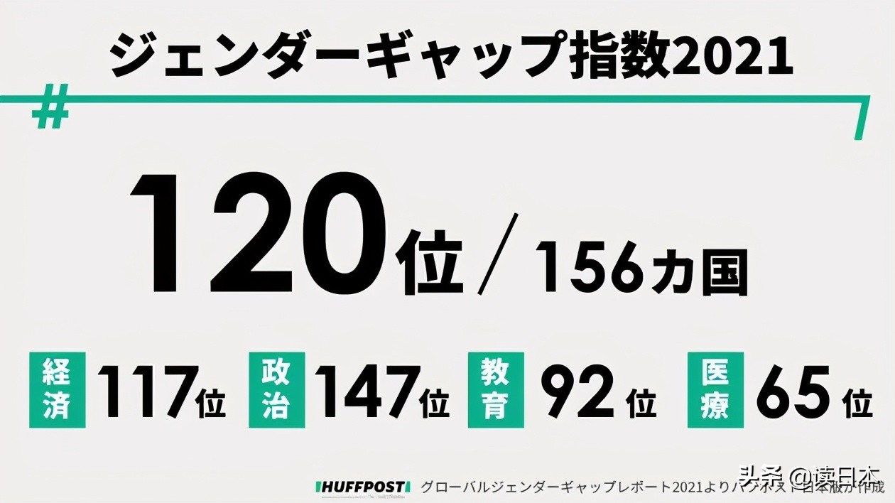 日本女性的政治参与度排名147位,经济参与度排名117位。主要是因为,日本女性很少担任政府要员,在企业管理层的比例也很低。而在受教育程度和健康程度方面,日本男女之间则没有特别明显的差异。