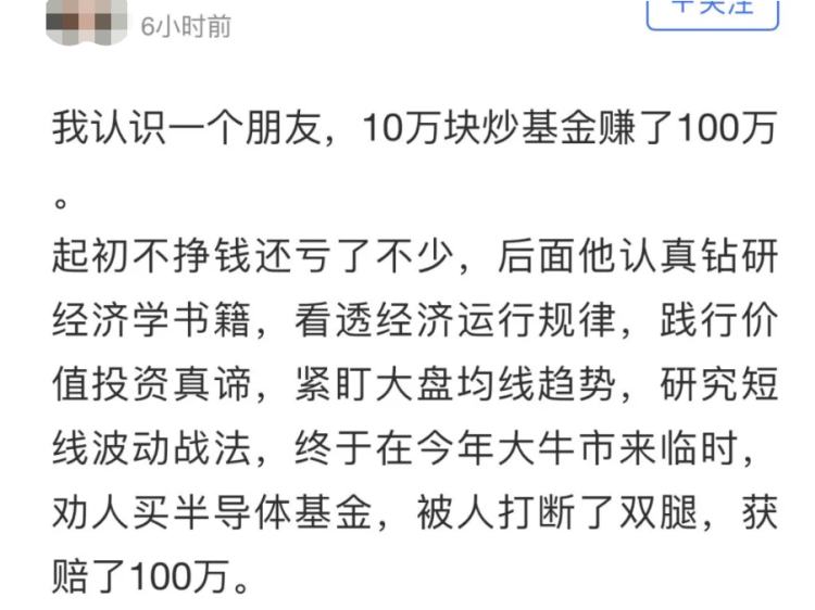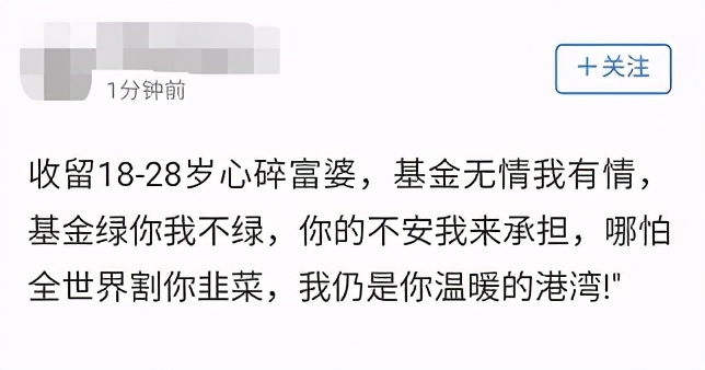 孤独,是因为没有对象,或者缺少社交。许多人的各种同学好友,玩着玩着就淡了,朋友越来越少、性格却越来越自我。玩基金多少还可以在群组里多个谈资。至于相亲帖,最多也就是“死马当成活马医”,博一下。