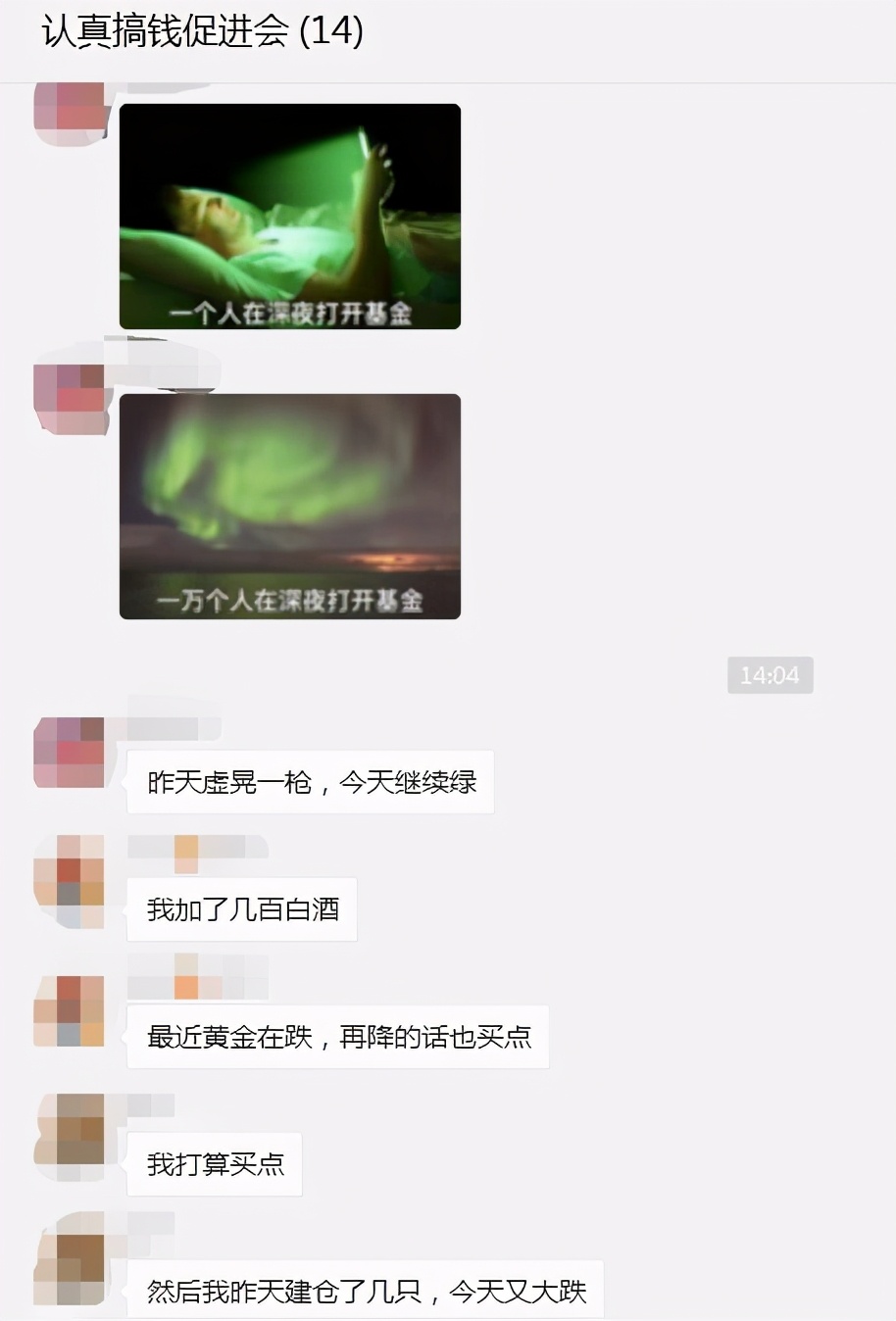 我和朋友们也建了一个基金讨论群,分享段子之余,也交流一下仓位和盈亏情况。