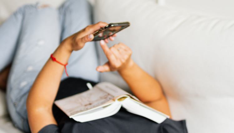 刚拿起书想要看,又忍不住拿起手机,是谓虚无。/Pexels