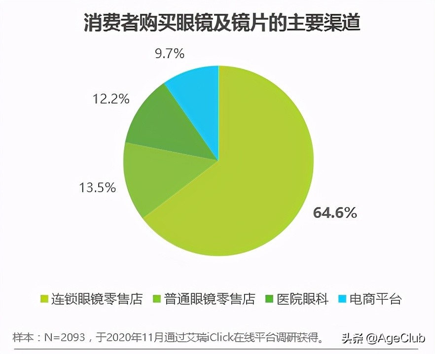 这与眼镜的特性密切相关,眼镜是一个极度依赖线下验配服务的行业,即便是购买成品老花镜,消费者依然倾向于咨询店员或者试戴体验。所以,线上渠道的兴起虽然对消费者起到了一定的分化左右,但消费者购买眼镜的主流渠道,仍以线下为主。