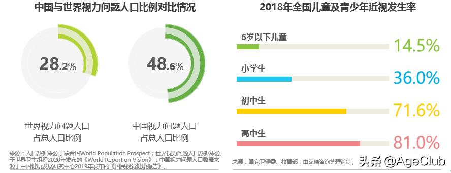 60年前,中国人的近视率在10%-20%之间。如今,60年的时间过去,根据中国健康发展研究中心2019年发布的《国民视觉健康报告》数据显示,中国视力问题人口占总人口的比重接近50%,其中近视人口到2020年,预计将达7亿。