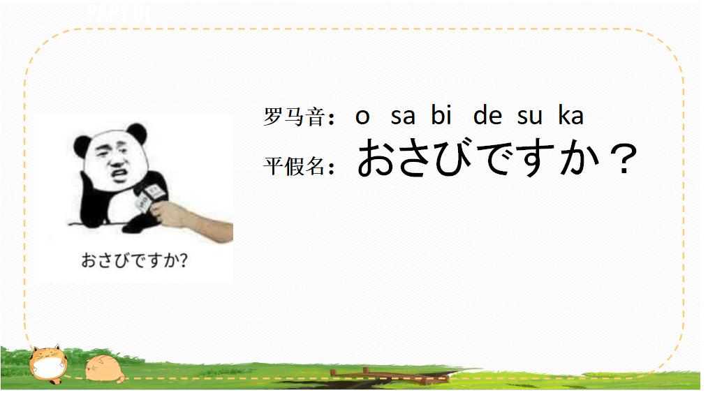 大家如果不认识日本的文字,可以跟着罗马音的发音来念一下。罗马音的发音方式大部分跟我们中文的拼音发音方式一样,所以大家念完以后是什么感觉?是不是瞬间秒懂?所以中国人学日语在发音方面是有很大的优势,除了带有中文文字之外,很多拼音我们一看就懂。既然对中国人这么简单,对日本人肯定也是一样的道理,所以中国人学日语和日本人学中文都是有先天的优势。但是大家要注意这个拼音并不代表他的日语翻译,像这一句话如果用日语的说法就是下面的表达方式。