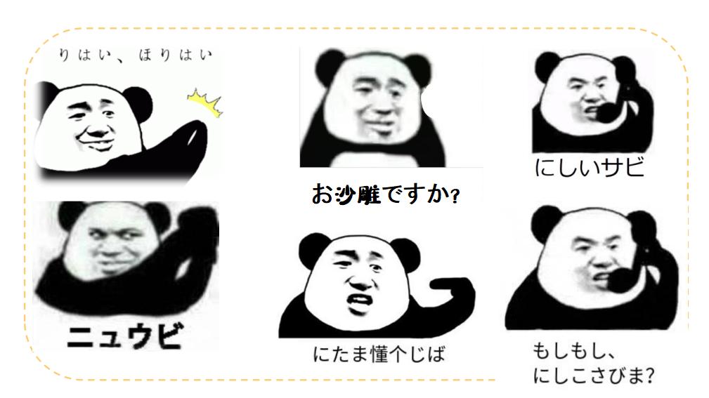 每一个时间段一些学生们就会特别流行一种聊天方式,最近我的学生们特别喜欢发一些带有日语的沙雕表情包。就像下面这样的图片一样,大家看到后是不是有一股熟悉的沙雕气味扑面而来?这些图片有多少是你日常生活中都会运用的呢?