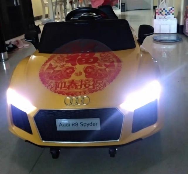 ?买到车后销售中心还赠送给车主一辆奥迪R8儿童车,车主儿子今年2岁,这辆儿童车确实能派上用场,车灯很亮,丝毫不输实车,灯厂出品确实不一般。