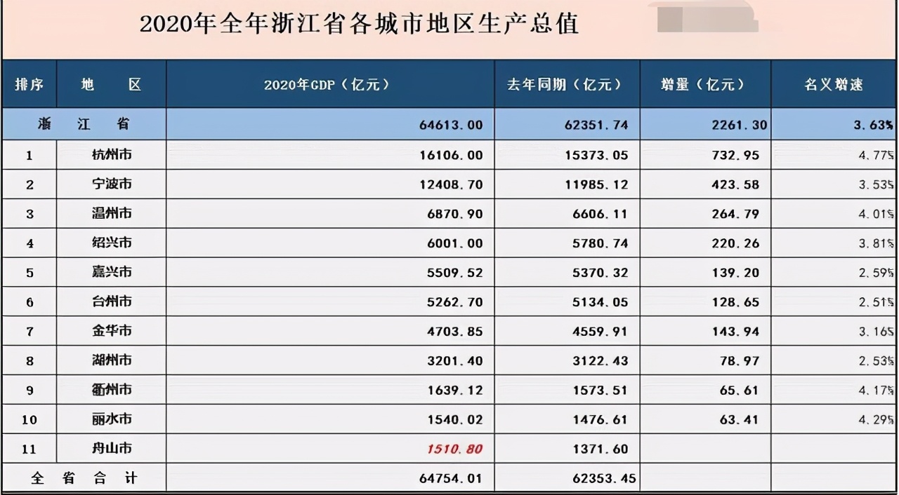 但很意外的是湖州市,过去的发达地区,如今在浙江11个地级市中,经济总量排名全省倒数第4名,仅仅比浙江人口小市、边缘山区市衢州、丽水、舟山好点,2020年GDP只有3201.40亿元,实在让人不能接受。