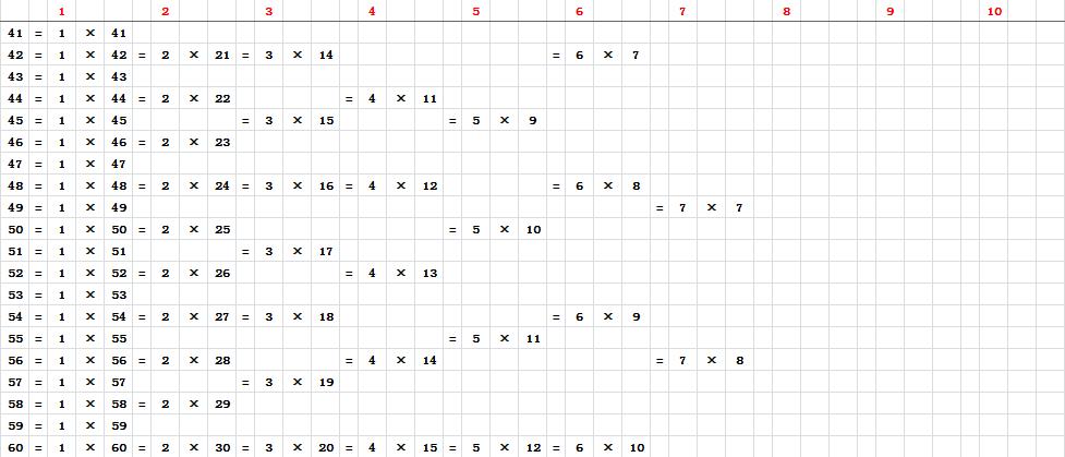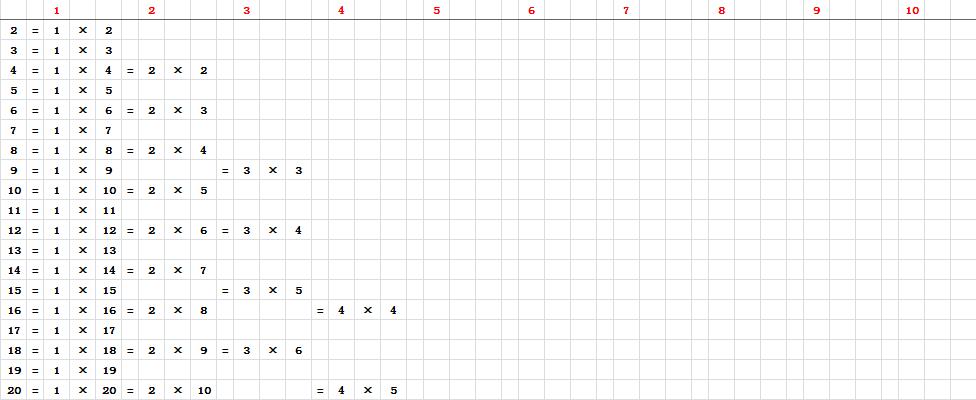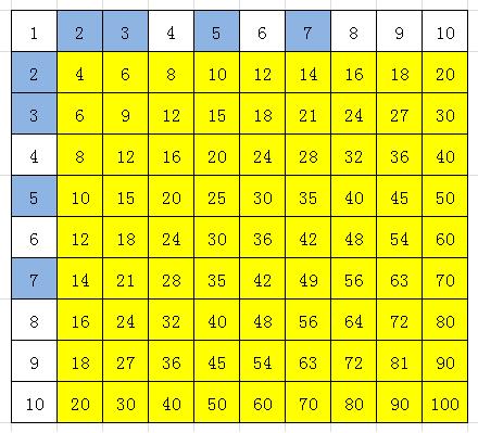 第一步——在前文的大表中,只能找到2、3、5、7四个质数。