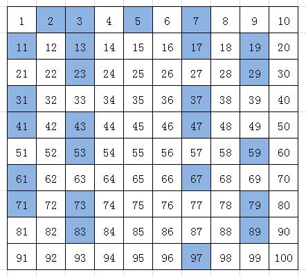 第二步——在1-100的表中找质数。