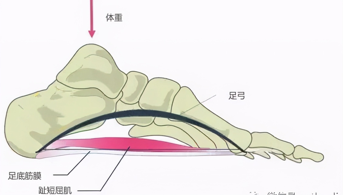 说这个问题之前我们必须要讲讲足底的构造是什么样的,这样我们才能更好的了解这个疾病的发病原理。还是为了方便大家理解,我们还是看图说话。看下面这张图.