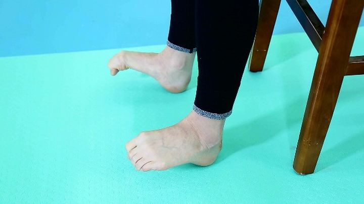在家找一块毛巾,如上图一样,用脚指头向下夹毛巾,做个50到80下。主要是缓解筋膜的张力。