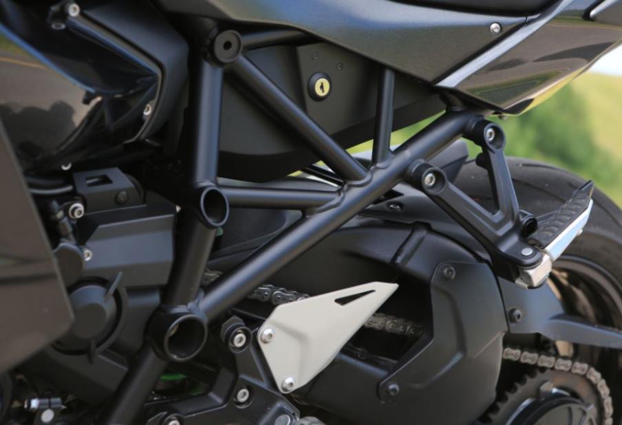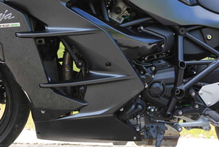 动力部分,川崎Ninja H2 SX配四缸水冷引擎,实际排量为998ml,最大马力200匹,最大扭矩为141.7N.m,最高车速为320km/h,这已经达到了高铁的速度。