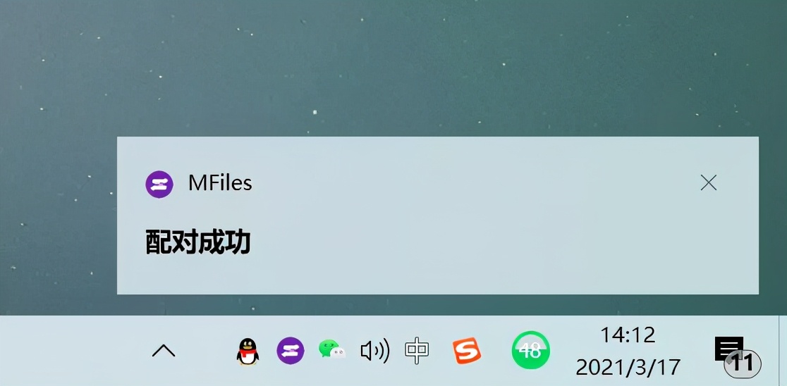 打开手机端的 MFiles 并选择扫码配对,一旦电脑端弹出 “ 配对成功 ” 的窗口,手机与电脑就算是配对完成,以后我们在手机上打开软件就会自动秒连。