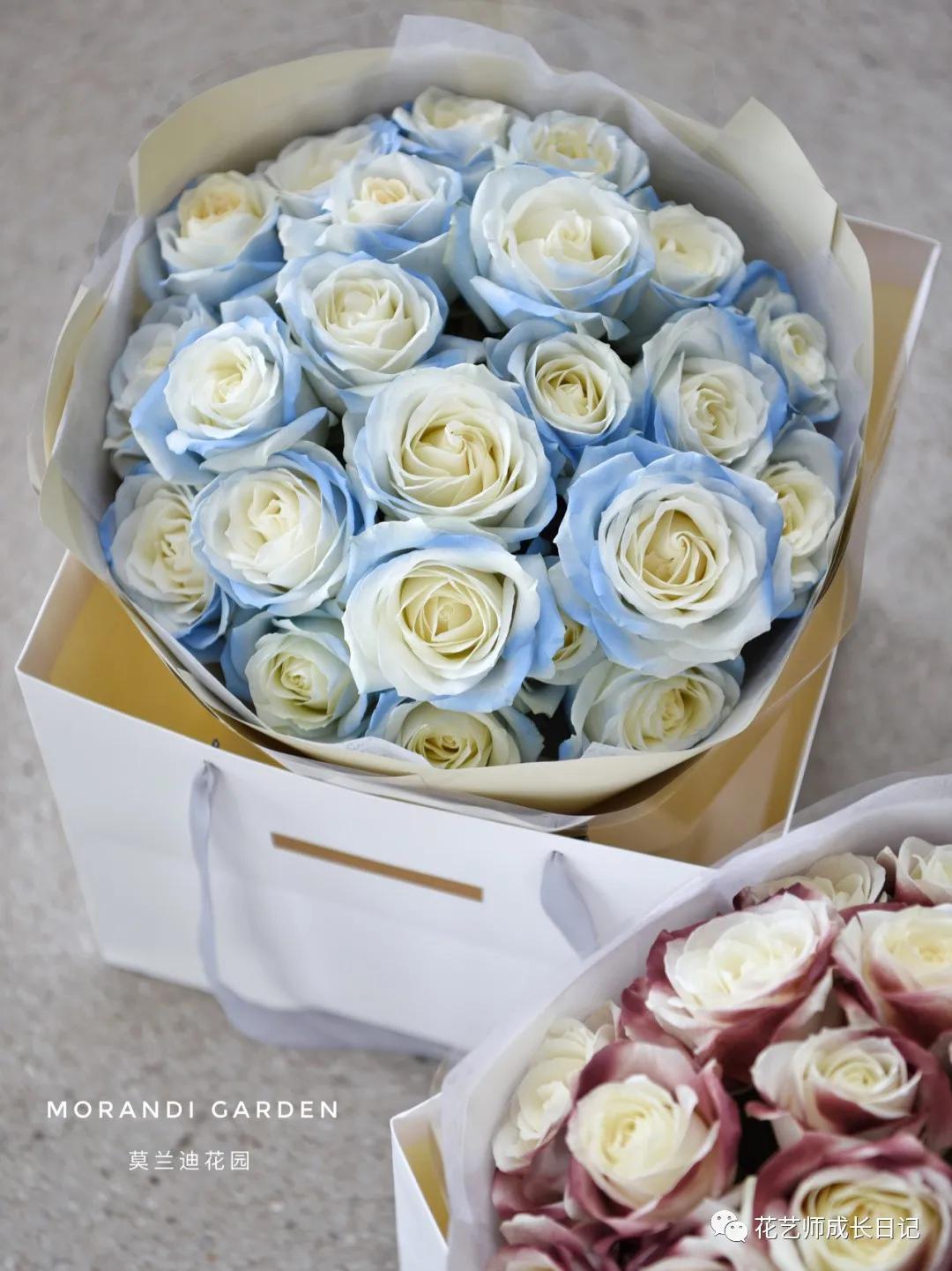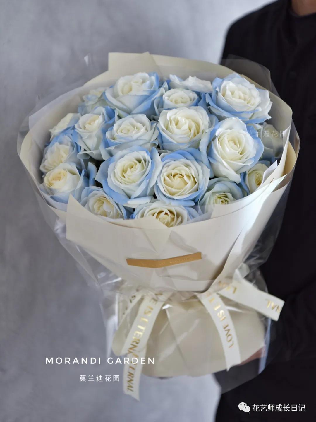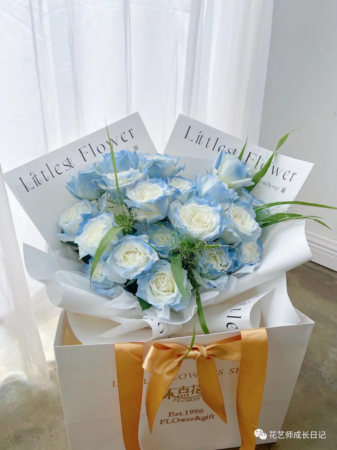 520即将到来,各家花店也是争先推出各种创意新玩法。今天,那夏要给大家分享的就是碎冰蓝玫瑰花束,在之前的文章中,那夏也给大家分享过碎冰蓝染色技术,感兴趣的小伙伴可以翻翻之前的文章。