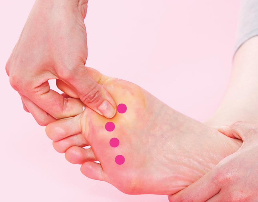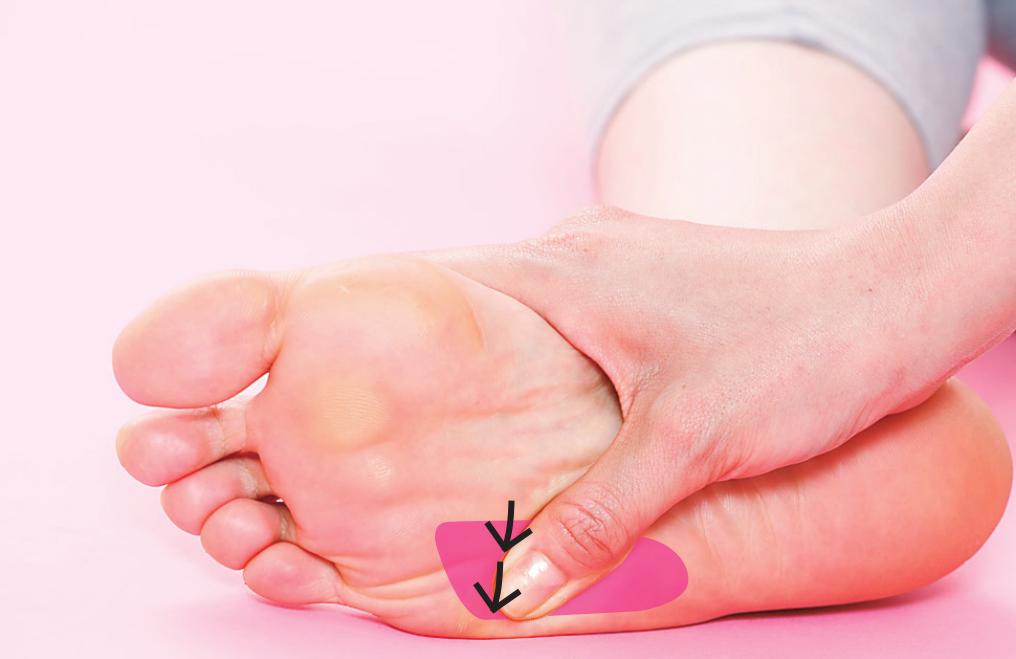 按压与肾脏反射区紧邻的肾上腺反射区。该反射区位于深处,用拇指按压后进一步按压足弓。按压肾上腺反射区有痛感就可以了。没有痛感可能说明免疫力下降了。