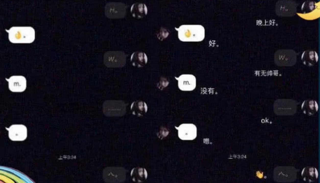 首先给家长们科普的第一种“摩斯密码”聊天法,是用字符符号代表文字,例如下图,如果你以为下面这两个孩子发的标点符号只是无意义的标点符号的话,那你可就大错特错了。