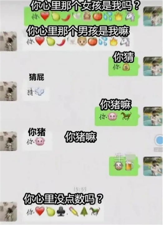 除了符号对话、表情对话和缩写表达法以外,还有一种就是三者合并在一起的升级版,也是更让老师家长看完蒙圈的聊天对话方式。