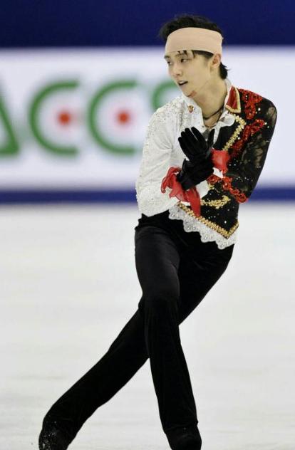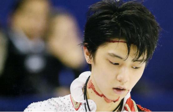 2014年的中国杯上,羽生意外与闫寒相撞,当时两人都处于快速滑行状态,相撞后闫寒因伤势过重退赛,而羽生硬是留着血痕,包扎着绷带完成了比赛。鲜艳的红色留在俊俏的脸上,从此他又成就了一段“血魅”传奇。