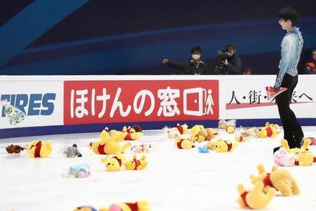 羽生的冰迷们都知道,被昵称为小柚子的他最爱的吉祥物是小熊Pooh——维尼熊。每次在等待打分、镜头切换到休息间时,所有人都能看到羽生身边摆放的Pooh君,那是黄色的肉肉的维尼小熊。而每次滑行结束一曲终了,冰场上便会下起铺天盖地的黄色维尼熊雨,这是冰迷们对羽生最真诚的爱和赞赏。