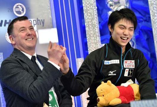 除了Pooh君,在休息间出镜最多的就是羽生身边的教练了。说来仿佛上天注定一般,冰迷们能看到的胖胖大叔像极了维尼熊Pooh君,原来此人就是大名鼎鼎的“花滑教父”——加拿大人布莱恩·奥瑟。