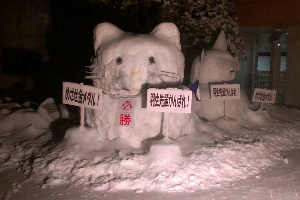 爱笑的小孩总是惹人怜爱的:羽生结弦平昌夺金那一晚,宫城县下了暴雪,他高中的学弟们则趁着下雪,为羽生堆了超大的应援雪人。