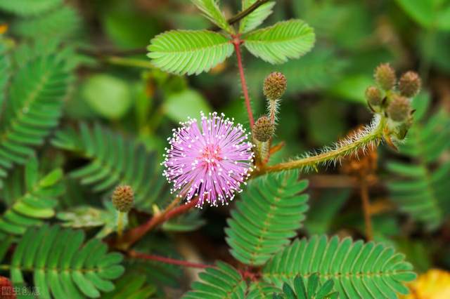 含羞草的叶子如果用手触摸、浇水或遇台风,便会 缩起来,就好像在向人鞠躬一样,是个彬彬有礼的植物。因此,它的花语就是——礼貌。