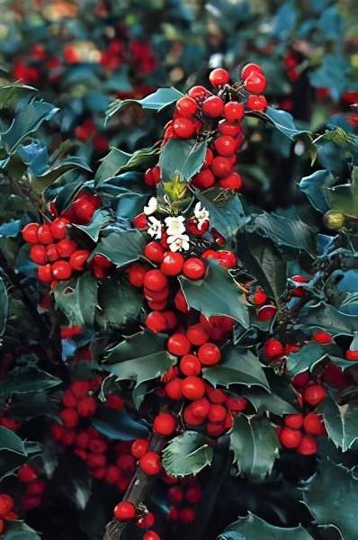 这种植物的果实,具有在整个冬季都不会从树枝上掉下来的特性。当鸟儿没有饲料,饥饿难忍时,冬青树的果实正好可以维持生命。因此,冬青树的花语就是—— 生命。