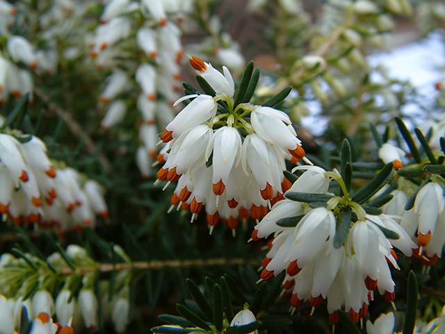 白色石南树丛于初冬开花,最初是粉红色的花苞,而后变成白色,到3、5月左右才开花。由于花期很长,因此它的花语就是——持久。