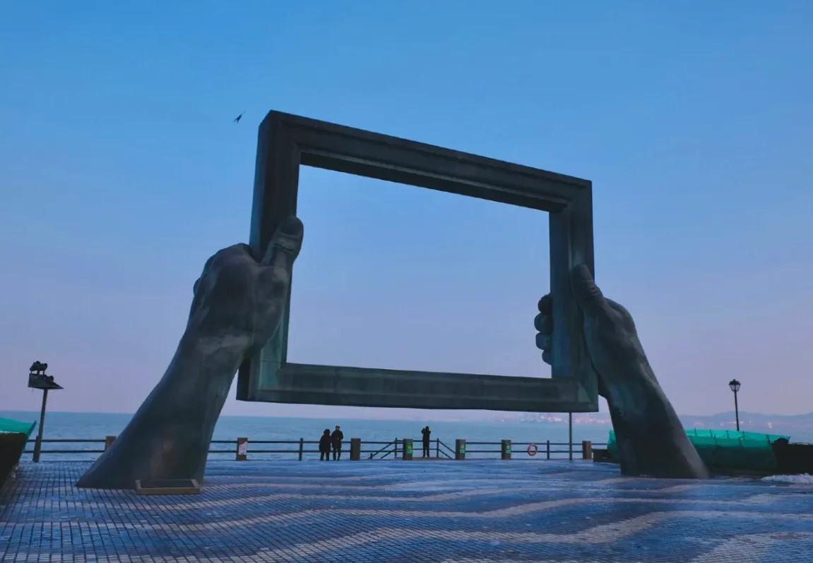 幸福门广场:幸福门下面的雕塑顶部有威海的地图,海边有很多海鸥,冬季是欣赏海鸥最佳时节,可以买一包鸟食喂海鸥。对面的建筑也很有风格。