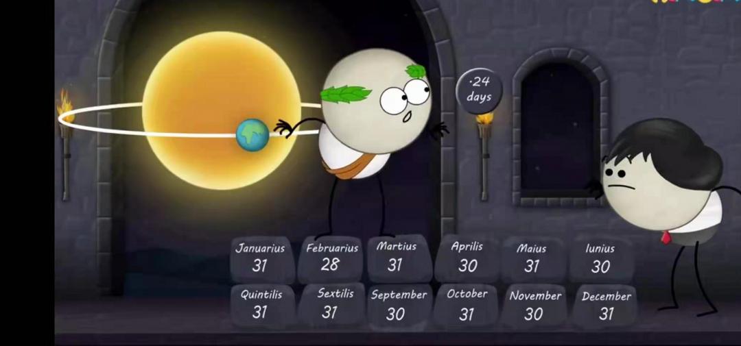 许多世纪以前,一位名叫努玛的罗马国王根据12个农历周期制作了一个日历,周期大约为354天。