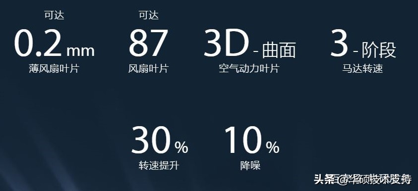 装有87个扇叶的IceBlades风扇和叶轮,由液晶聚合物制成,比普通风扇更轻,更薄。
