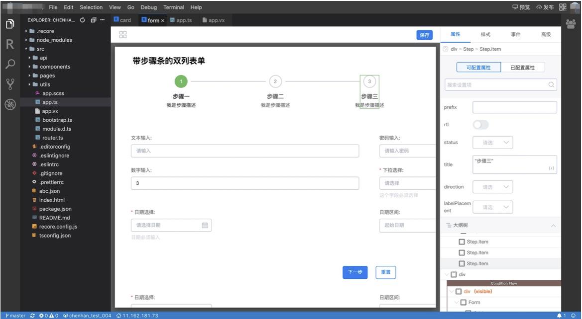 服务化就是我可以让其他团队也快速拥有低代码搭建的能力,并且可以做定制,比如组件定制、设计器面板定制。这样思路就打开了,不仅能支持其他团队的中后台场景,凡是和搭建相关的场景,都可以做。