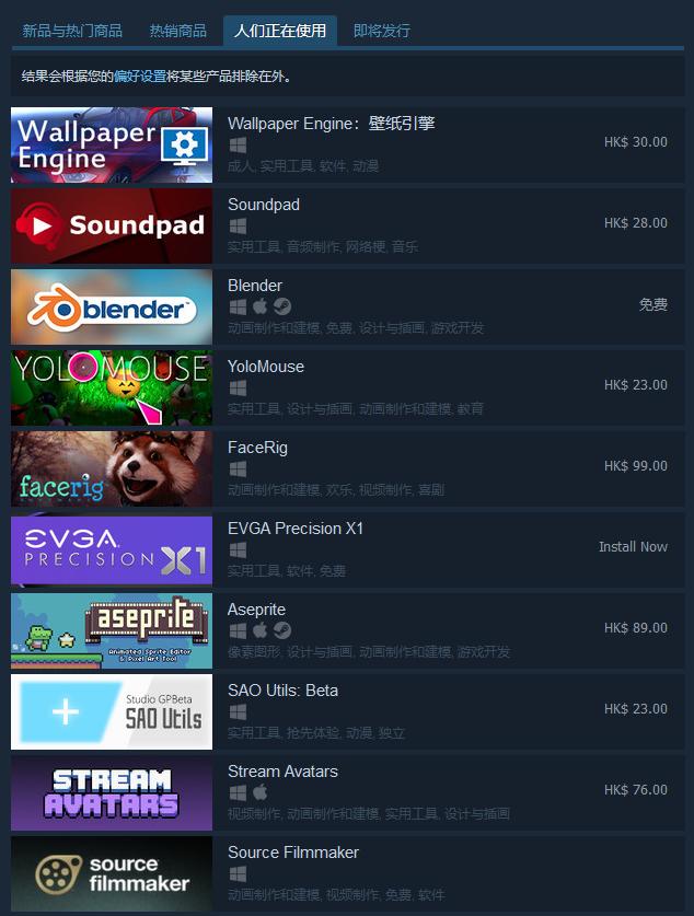众所周知Steam不仅仅是一个游戏销售平台,同时也是一个软件销售平台。像是壁纸引擎、建模软件Blender还有V社自家的Source Filmmaker都可以从Steam上购买和下载。